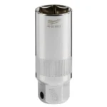 The MILWAUKEE 3/8″ Drive 13/16″ 6-Point Spark Plug Socket features a durable dual-material rubber retainer designed to maintain a more secure fit within the socket while securely holding onto spark plugs to avoid dropping or damaging. A precision knurling on the outside of the spark plug socket allows for better control when hand tightening or loosening. Both the socket and retainer withstand harsh chemicals commonly found in the garage. Stamped size markings make it easy to identify the size of the socket. The external hex at the base of the socket fits a 13/16” wrench for added control. Milwaukee Spark Plug Sockets are backed with a Lifetime Guarantee.