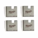 MILWAUKEE® Portable Pipe Threading Dies are replacements for: MILWAUKEE® Forged Aluminum Die Heads, MILWAUKEE® Compact Forged Aluminum Die Heads, RIDGID 11-R, 12-R, O-R, 111-R, 00-R, 30A and 31A Threaders, Reed R-12+ Dropheads, DeWalt Pipe Threading Die Heads, and Wheeler Rex 12R Style Die Heads. Offered in Alloy and High-Speed Tool Steel sizes 1/2″-2″.  Milwaukee’s High-Speed Dies have the ability to thread Stainless Steel Pipe. Stamped size, type and alignment numbers for easy identification and installation.