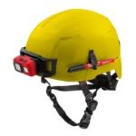 The MILWAUKEE® Type 2, Class E Yellow Safety Helmet delivers better protection and more comfort. The safety helmet offers protection from top and side impacts. These construction safety helmets are BOLT™ compatible with four BOLT™ accessory slots and two universal accessory slots that easily integrate additional personal protection equipment and accessories to adapt to any jobsite. The helmet includes a BOLT™ Headlamp Mount that works with most headlamps for easy, secure attachment, and a BOLT™ Marker Clip allows for easy access to pens and markers. This Milwaukee helmet has a comfortable padded suspension that includes an adjustable swinging ratchet for better comfort. The climbing style helmet also has a comfortably fitting five adjustable buckle chin strap for better security. An antimicrobial sweatband and helmet liner prevent odor and bacteria build up and are removable and machine washable. These safety helmets are ANSI type 2 and customizable by adding a logo.