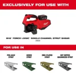 • Exclusively compatible with M18 FORCELOGIC Single Channel Strut Shear