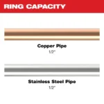 The MILWAUKEE 1/2″ CTS-V Pivoting Press Ring is designed for use with M18 & M12 FORCE LOGIC Press Tools. The 1/2” CTS-V Pivoting Press Ring is a more efficient alternative to sweat and solder, enabling you to press connections on copper and copper tube-sized (CTS) stainless steel pipe. Pivoting functionality delivers greater access in tight spaces when paired with the X3 Ring Jaw & M12 FORCE LOGIC Press Tool or the X4 Ring Jaw & M18 FORCE LOGIC Press Tools. Additionally, Milwaukee’s press blocking system prevents improper ring and ring jaw mismatch providing peace of mind in quality connections. The 1/2″ CTS-V Pivoting Press Ring, combined with the ring jaw and in-line M18 & M12 FORCE LOGIC Press Tools, deliver unrivaled access in tight spaces and around installed pipes, providing you with controlled, flameless copper connections for unmatched productivity.