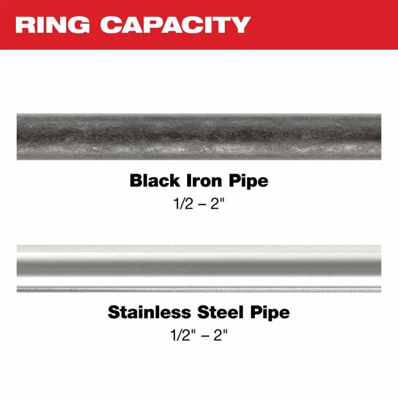 - Pressing capacity: 1/2″-2″ black iron and stainless steel pipe