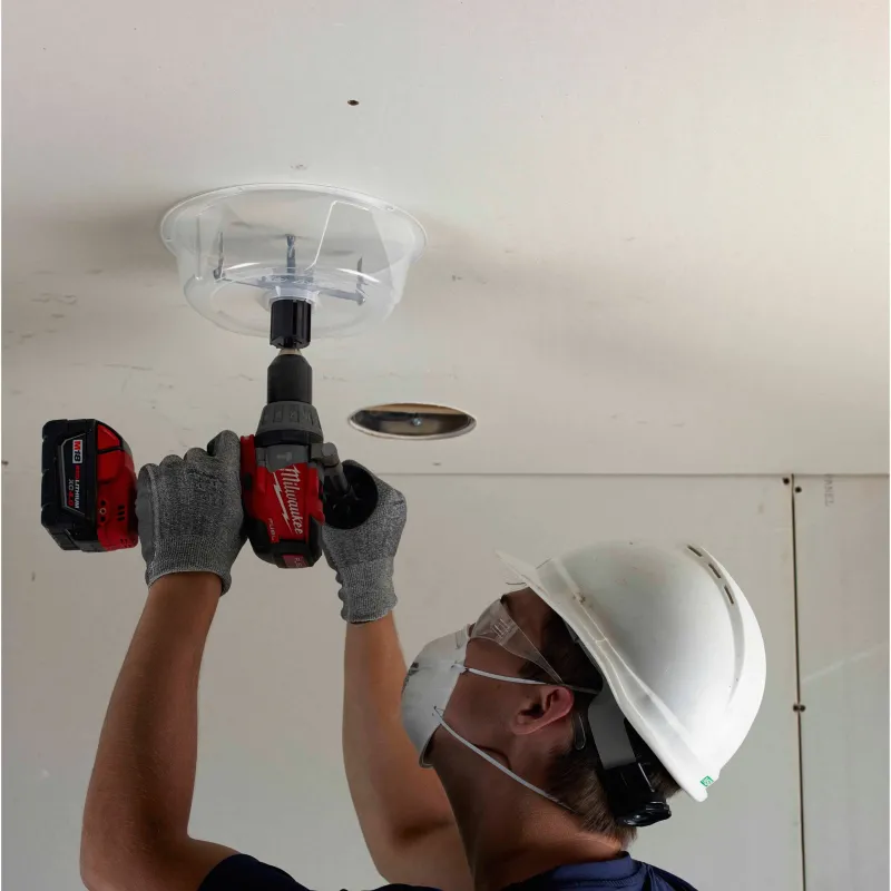 The Milwaukee® Adjustable Hole Cutter offers a one-size-fits all solution to make holes in drywall and ceiling tile. Cutting diameters range from 2” through 7”with 1/4″ increments for almost double the amount of sizes over the competition. Utilizing a Quik-Lok™ arbor for tool-free adjustability as well as laser etched markings and size indicator, users can quickly and easily identify and change sizes without the use of a hex key. A best-in-class durable and reusable debris shield with spring collar keeps cutting blades level and work areas clean, especially in over-head cutting applications. Choose the Milwaukee® Adjustable Hole Cutter for applications in drywall and ceiling tiles including: recessed lights, audio speakers, fire/security systems, and clearance holes.