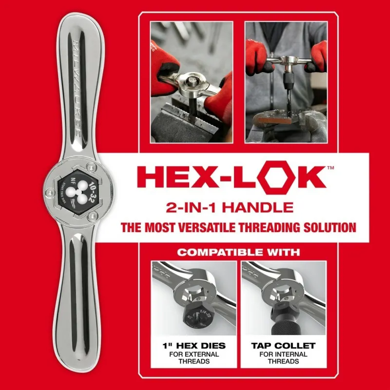 - Hex-LOK 2-in-1 Handle is compatible with 1” hex dies & MILWAUKEE Tap Collet