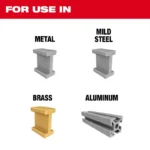 • Designed for use in metal materials including brass, aluminum, mild steel, and more