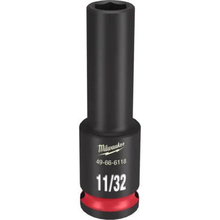 The MILWAUKEE® SHOCKWAVE Impact Duty™ 3/8″ Drive 7/16″ Deep 6 Point Socket features the boldest, longest-lasting markings and extreme impact durability in high torque applications. The stamped and ink-filled size marking enables an accurate socket selection every time throughout the life of the socket. Engineered with high-strength forged steel for optimized performance in heavy-duty applications, and a non-slip hex geometry prevents fastener rounding. The dual-hole design and ring groove allow for easy socket attachment and removal. All SHOCKWAVE Impact Duty™ Sockets are backed by a Lifetime Guarantee and meet ASME industry standards.