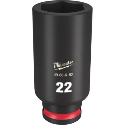The MILWAUKEE® SHOCKWAVE Impact Duty™ 1/2″ Drive 1/2″ Standard 6 Point Socket features the boldest, longest-lasting markings and extreme impact durability in high torque applications. The stamped and ink-filled size marking enables an accurate socket selection every time throughout the life of the socket. Engineered with high-strength forged steel for optimized performance in heavy-duty applications, and a non-slip hex geometry prevents fastener rounding. The dual-hole design and ring groove allow for easy socket attachment and removal. All SHOCKWAVE Impact Duty™ Sockets are backed by a Lifetime Guarantee and meet ASME industry standards.