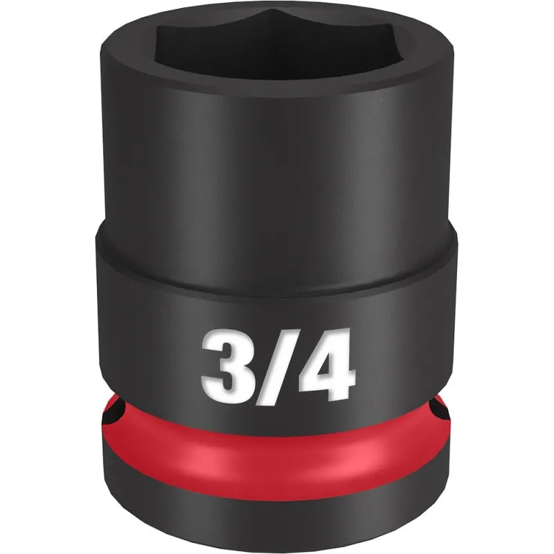 The MILWAUKEE® SHOCKWAVE Impact Duty™ 1/2″ Drive 3/4″ Standard 6 Point Socket features the boldest, longest-lasting markings and extreme impact durability in high torque applications. The stamped and ink-filled size marking enables an accurate socket selection every time throughout the life of the socket. Engineered with high-strength forged steel for optimized performance in heavy-duty applications, and a non-slip hex geometry prevents fastener rounding. The dual-hole design and ring groove allow for easy socket attachment and removal. All SHOCKWAVE Impact Duty™ Sockets are backed by a Lifetime Guarantee and meet ASME industry standards.