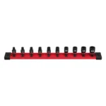 The MILWAUKEE® 10-Piece SHOCKWAVE Impact Duty™ 1/4 in. Drive SAE Standard 6 Point Socket Set features the boldest, longest-lasting markings and extreme impact durability in high torque applications. The stamped and ink-filled size marking makes selecting the right socket every time easy throughout the life of the socket. These Milwaukee sockets are engineered with high strength forged steel for optimized performance in heavy-duty applications. The non-slip hex geometry prevents fastener rounding, and a dual-hole design and ring groove allow for easy socket attachment and removal. The customizable Socket Rail comes with removeable end caps to add or take off socket clips for optimal storage. All SHOCKWAVE Impact Duty™ ™ Sockets backed by a Lifetime Guarantee and meet ASME industry standards.