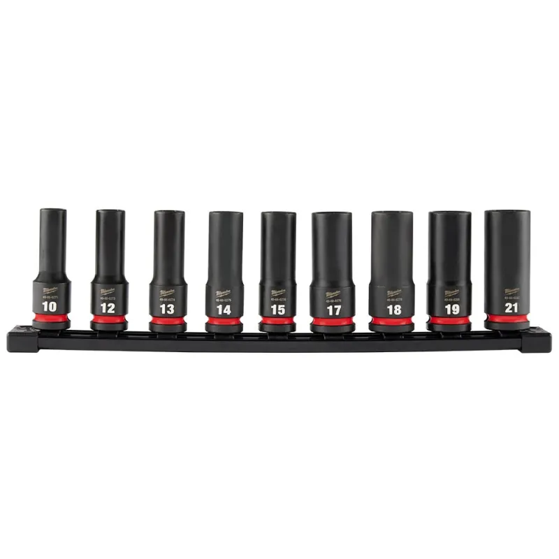 Milwaukee 49-66-7032 SHOCKWAVE 1/2″ Drive Metric Deep Well 6 Point Impact Socket Set (9-Piece)