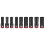 Milwaukee 49-66-7032 SHOCKWAVE 1/2″ Drive Metric Deep Well 6 Point Impact Socket Set (9-Piece)