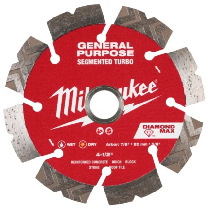 Milwaukee 49-93-9004 4-1/2" DIAMOND MAX Segmented Turbo, General Purpose Diamond Blade $87.99 Original price was: $87.99.$17.48Current price is: $17.48.