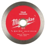 The MILWAUKEE Continuous Tile Diamond Blades offer precise tile cutting. The continuous rim provides precise finishes in porcelain, ceramic, marble, and granite. Designed with high-quality diamonds, these blades provide up to 2X longer life in tile. The solid steel core delivers controlled cuts for precise finishes. For use wet and dry.