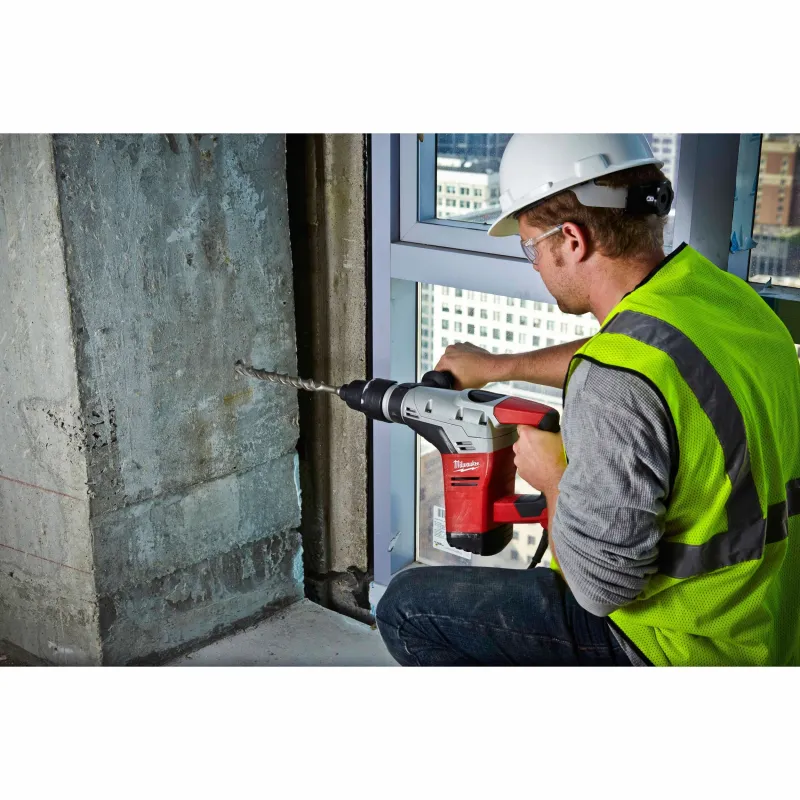 The Milwaukee 1-9/16″ SDS Max Rotary Hammer features a 10.5 amp motor that delivers optimal power for concrete drilling and chipping applications. 5.5 ft-lbs of impact energy combined with 450 RPM and 3000 BPM result in fast drilling performance for the electrical, mechanical, plumbing, HVAC and general construction contractor. The 5317-21 features a 12-position chipping adjustment which allows the user to maintain the desired hammer position while chipping in any orientation. A mechanical clutch and advanced electronics provide ease of use and overall durability for the user.