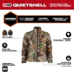 Our M12™ Heated QUIETSHELL Jacket delivers HEAT BUILT FOR SILENT MOVEMENT. Powered by Milwaukee’s NEW HEXON HEAT TECHNOLOGY™, this jacket STAYS WARMER FOR LONGER in all temperatures, delivers the FASTEST HEAT UP TIME and offers GREATER HEAT COVERAGE throughout the garment. Whether facing freezing outdoor temperatures or navigating spaces with minimal heat indoors, this jacket adapts to its environment to deliver effective heat in any condition. 3X more insulation combined with HEXON HEAT TECHNOLOGY™ maximizes heat retention and enhances comfort. The hidden battery pass-thru pocket allows for front or back battery placement, increasing versatility depending on the situation. Featuring the REALTREE EDGE® camouflage pattern, the durable 100% stretch polyester fabric with DWR finish is a go-to for shielding against the elements and reducing noise from movement. Our Milwaukee® Heated Gear is developed in collaboration with feedback from users across the trades through continuous jobsite research.