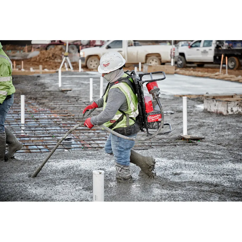 The MX FUEL™ Backpack Concrete Vibrator provides consistent starts and the most reliable pours with the power to push up to 2-1/2” heads, no gas headaches, consolidating up to 70 yds3 per charge with a 1-1/2” head and 7’ shaft. The POWERSTATE™ Brushless Motor delivers the power to push up to 2-1/2” head at over 11,000 VPM for optimal consolidation, even in the stiffest concrete. The MX FUEL™ REDLITHIUM™ battery pack provides instant power with no gas headaches. This results in a Backpack Concrete Vibrator that requires no regular maintenance, less noise and zero emissions for a safer workspace, indoors or outdoors. The push-button start delivers instant power, eliminating the repetitive motions of a pull start, and reducing downtime allowing you to get jobs done faster, without sacrificing the power and runtime you expect. The battery-powered backpack vibrator is compatible with all MX FUEL™ REDLITHIUM™ batteries, giving you the hardest working and most reliable power for equipment. The modular design allows you to easily remove the backpack harness for walls and columns. The MX FUEL™ Backpack Concrete Vibrator can accept whips up to 21 ft long, without sacrificing power. The wireless remote give you the ability to turn the machine on from up to 30 feet away, for more freedom when using long whips. REDLINK PLUS™ Intelligence ensures optimal performance and provides overload protection to protect your machine and battery during the toughest applications. The MX FUEL™ Backpack Concrete Vibrator is ONE-KEY™ Compatible. You can track, manage and secure your equipment from your mobile device or computer using the industry’s largest Bluetooth® community tracking network. If your concrete vibrator is ever lost or stolen you can prevent tampering with remote lockout capability.