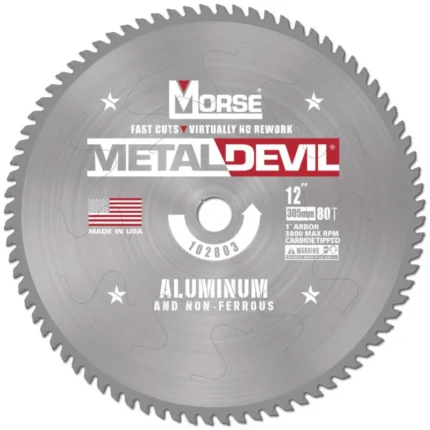 Morse Metal Devil, CSM1092FTNFC (102780), is specifically designed for cutting non-ferrous (aluminum, brass, copper) tubing, extrusion, or other structural shapes not exceeding 1/2″ wall thickness. Blade has standard 5/8″ arbor.