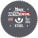 Morse Metal Devil, CSM1260FSC (102797), is specifically designed for cutting steel plate and small solids not exceeding in 3/8″ thickness, and tubing, channel, or other structural shapes not exceeding 1/4″ wall thickness. Blade has standard 1″ diameter arbor hole.