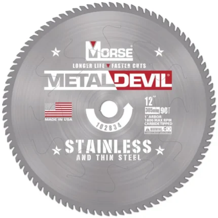 Morse Metal Devil, CSM5383258FSC (102506), is specifically designed for cutting steel plate and small solids not exceeding in 3/8″ thickness, and tubing, channel, or other structural shapes not exceeding 1/4″ wall thickness. Blade comes standard as 5/8″ arbor.