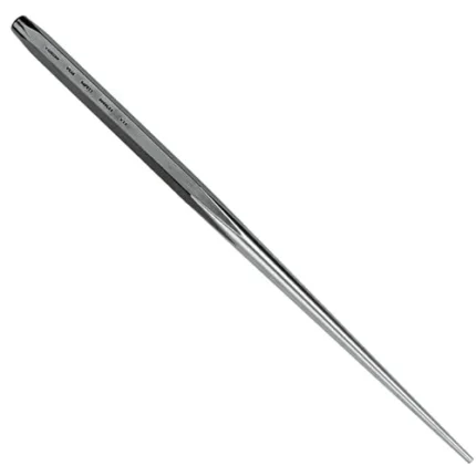 The Proto® drive pin punch is a 2-piece design made from S2 steel and specially heat treated for strength. Reverse taper helps prevent binding. Black oxide finish prevents corrosion. Modified parabolic striking end helps reduce mushrooming and chipping. Size is marked on tool.