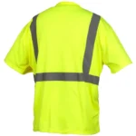 Pyramex Safety RTS21NP-Series T-Shirt Hi-Vis Lime, No Pocket. Hi-vis lightweight polyester moisture wicking t-shirt with 2 inch silver reflective material around bottom and over shoulders