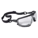 Radians Dagger™ foam lined safety goggle has snap-in temples which allow interchanging from ratcheting and telescoping temples to adjustable head strap.