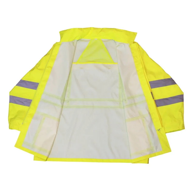 Radians RW10-3S1Y is a Class 3, lightweight rain jacket with Reflectivz™ weatherproof and high visibility technology. The 150 Denier PU coated, high visibility oxford material provides excellent protection. The lightweight jacket with a vented back cape will keep you cool and comfortable, while still protecting you in tough environments.