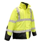 The Radians SJ41 Class 3 Three-In-One Weather Proof Parka is wind and water resistant and comes with a removable inner fleece jacket with lined sleeves for added warmth and protection. High visibility safety jacket has zippered pockets and pass through on back for fall protection.