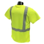 This safety T-Shirt is made with an arid Birdseye Mesh allowing for maximum breathability, without compromising durability. The stripes are adhered by heat transfer rather than sewn on, making the safety T-shirt wear much more like a regular T-shirt. The wicking properties improve hot weather comfort making it feel much cooler. The front pocket does not include reflective material to allow for corporate imprints.