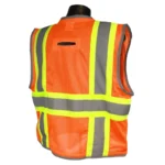 Radians SV6H Class 2 Heavy Duty Two Tone Surveyor Safety Vest is a reinforced version of a standard surveyor vest. Reflective material is used for edging to enhance reflective brightness. Multi-function pocket designs, including a clear vinyl credential/badge holder, featuring large inside pockets. Includes a rear D-Ring pass through for use over fall protection.