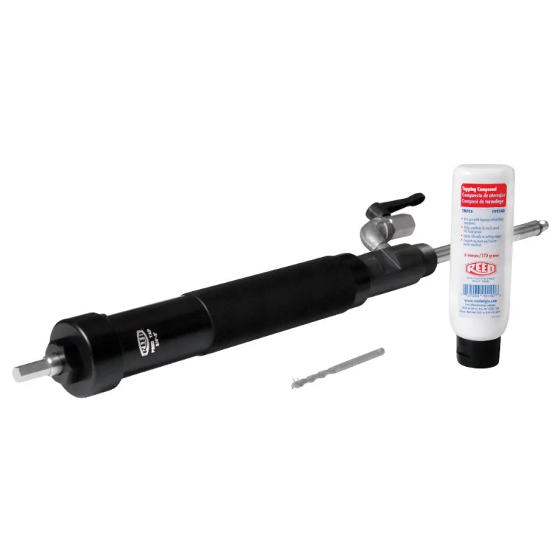 Reed’s Feed Tap™ is a great waterworks tool that drills through PVC, PE, cast iron and ductile iron pipe while under pressure using a corporation stop inserted into a service saddle. The compact design, featuring a separate, independent feed control for advancing the heavy-duty shell cutter into the pipe, allows the user to easily complete the tap using a drill (not included) for cast and ductile iron, or manual power (7/16″ wrench) for PVC/PE and other plastic pipe. The independent feed control advances the shell cutter for tapping PVC pipe as recommended by Uni-Bell PVC Pipe Association. The FTB Feed Tap consists of the base unit which allows the user to purchase shell cutters and corporation adapters separately, as needed. A complete kit is sold as FT2000UNIV.  The kit contains both a coupon retaining drill bit, CRPD25 and two sets of coupon retaining magnets. The magnets work well on ductile iron taps and the CRPD25 bit works on all types of pipe taps. The retaining method used is up to the individual operator.  Plastic Pipe only FTP200UNIV is used for manual drilling operations using Reed’ s proven PE/PVC “PL series” shell cutters. The FTP2000UNIV comes complete with all corporation adapters, shell cutters, shell cutter adapters, and a ratchet wrench with socket to cover ¾” to 2″ services in PVC and PE. Each machine ships with a sturdy carrying case. Review the Feed Tap™ Operator’s Manual to choose the model best-suited to the job.