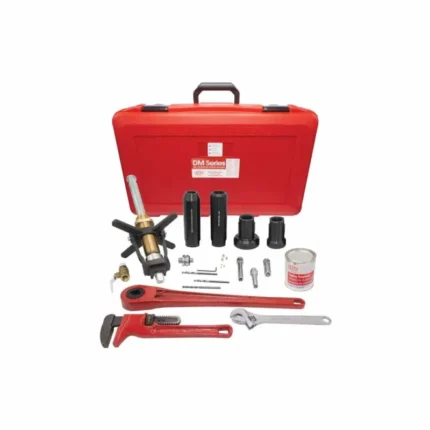 The PVC/PE Drilling Machine is used to cut through the pipe wall via the corporation stop inserted into the service saddle while under pressure. The DMPVC drilling machine consists of the base unit and corporation (corp) adapters in a carrying case. PVC/PE shell cutters are sold separately. DMPVCBASE drilling machine consists of the base unit in a storage tube, allowing the customer to purchase necessary corp adapters and shell cutters. DMPVC3/4 and DMPVC1 kits include one shell cutter, one corp adapter, DMPVCBASE, and a storage tube. DMPVC COMPLETE ships in a plastic toolbox and includes the DMPVCBASE along with corp adapters and PVC/PE shell cutters for both 3/4” and 1” drilling projects. NPT to CC corp adapter converters, and a 7/16” socket wrench complete the set.