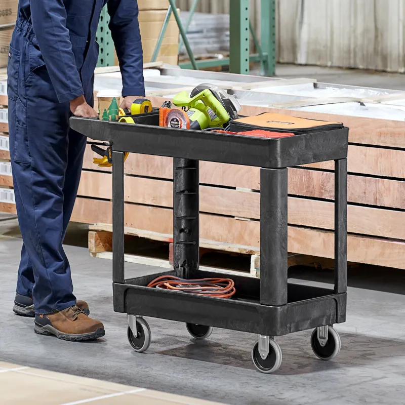 This utility cart is made of durable structural foam that will not leak, rust, chip, dent, or peel, and features two shelves that can hold a wide variety of items. Great for schools, hotels, restaurants, and more, this cart will be a handy, practical addition to any establishment!