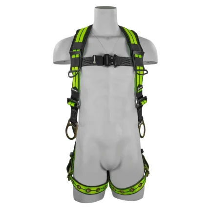 The Safewaze Pro+ Flex Iron Workers Harness incorporates all the features steel erectors value in their body harness. No industry demands more from their safety gear than Steel Erection. From the Flex webbing which enhanced durability and movement, to the support of ultra soft shoulder pads, this unit fits the bill. A rigid stationary back support is incorporated for excess tool weight requirements, making it an excellent harness choice.