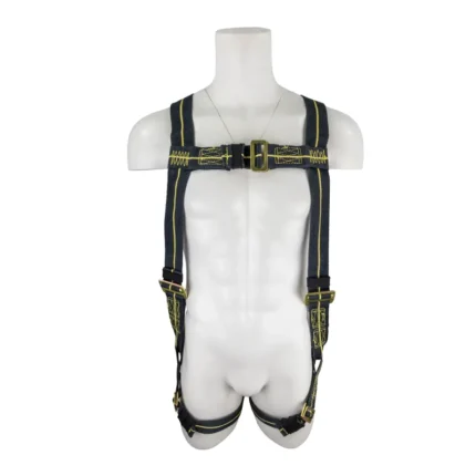 Materials 1.75″ (44.45 mm) Nylon Webbing, High-Strength Polyester Stitching, No-Tangle D-Ring Back Pad, Web Loop Dorsal D-Ring, Front Web Loop Rescue Ring, Dielectric Quick Connect Leg Buckles