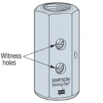 The CNW3/4-3/4-OST Coupler Nut by Simpson Strong-Tie is designed for 3/4″ threaded rods, featuring oversized threads for galvanized bolts and a witness hole for proper installation.