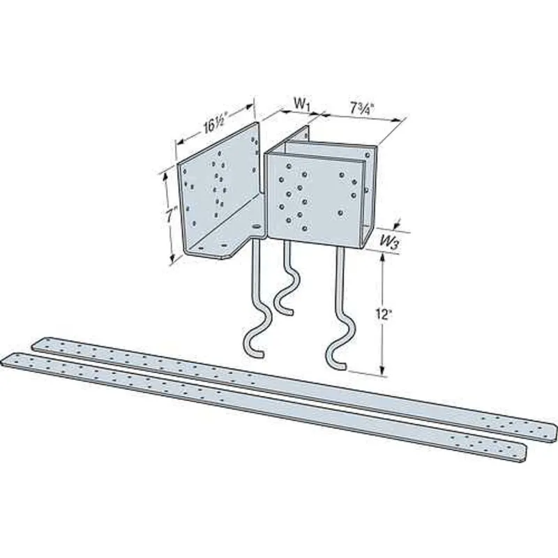 The Simpson ECCLRQMD3.62G-KT is a hot-dip galvanized L-shape embedded column cap designed for 3-5/8 in beams, providing high uplift and lateral resistance for concrete or CMU piers.