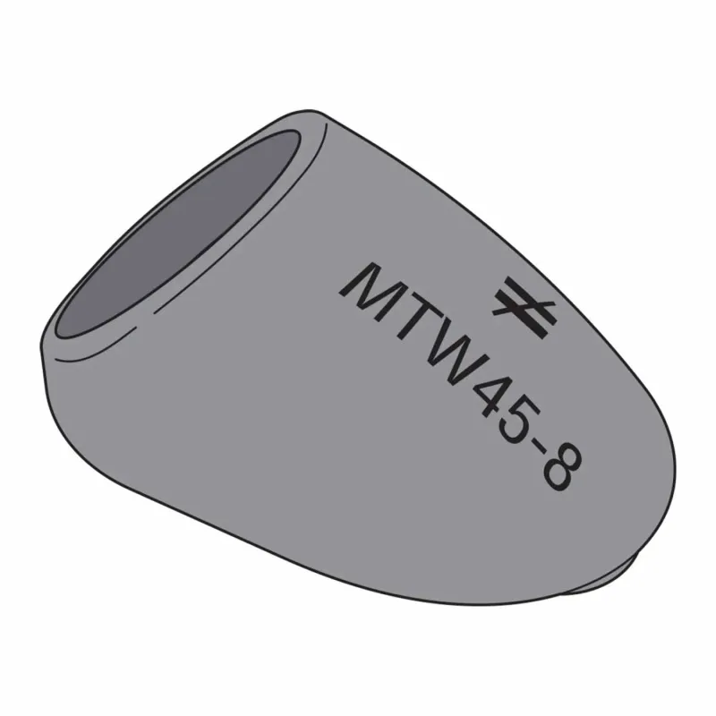 The MTW45-8-R10 Mass Timber Angled Washer is designed for use with 10 gauge connection plates and 8 mm-diameter screws, providing increased strength and stiffness for mass timber connections.