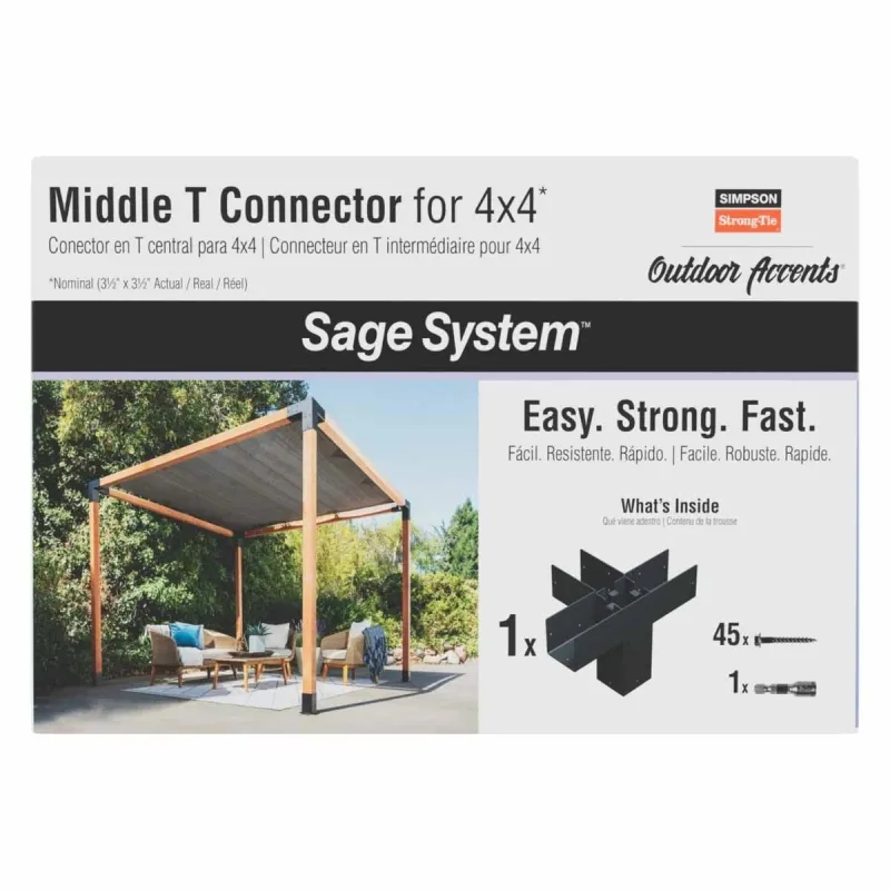 The Sage System 4×4 Decorative Middle T Connector Kit is designed for creating strong and stylish right-angle connections in timber framing projects.