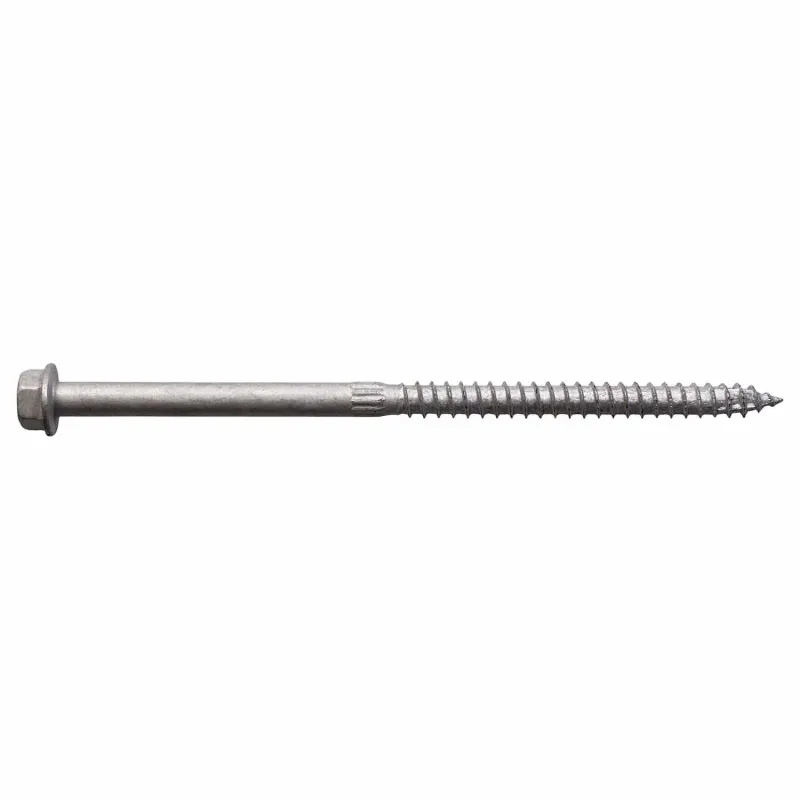 The Simpson SDS25500MB Heavy-Duty Connector Screw features a 1/4 in. diameter and 5 in. length, designed for robust connector installations. It comes with a double-barrier coating for enhanced durability.