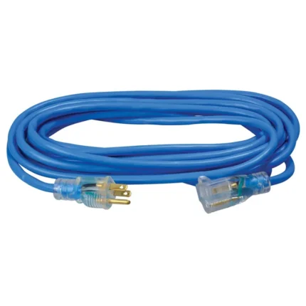 Description 12/3 100′ SJTW LOW TEMP BLUE EXTENSION CORD W/LIGHTED END