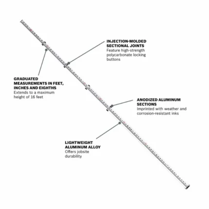 Bosch GR16 16′ Aluminum Telescoping Grade Rod, Feet/Inches/8ths