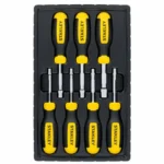 Ensure the tool you need is at your fingertips with the STANLEY 7 pc Metric Nut Driver Set. Featuring 7 different size nut drivers and a tray for easy organization. These nut drivers feature a chrome finish, strong steal bar design and size ID on each socket.
