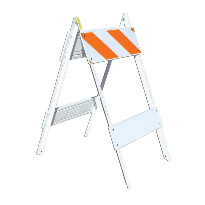 • Due to the lightweight plastic panels, this barricade weighs less than the traditional metal leg barricades with wooden panels – making it easier for set up and placement on the construction site.