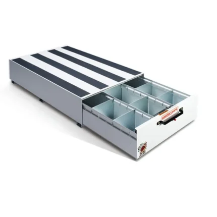 - Each truck bed storage and cargo van storage drawer compartment measures 5in high, 9.75in wide, and 45in long