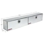 Hi-Side Truck Tool Boxes mount on the bed rails of your truck and offer quick access to valuable tools, equipment, and parts while keeping the truck bed open for supplies. The Model 396-0-02 is an aluminum diamond plate high side truck tool box with a storage capacity of 11.8 cu ft. The Clear ARMOR TUF® Powder Coat finish ensures years of dependability.