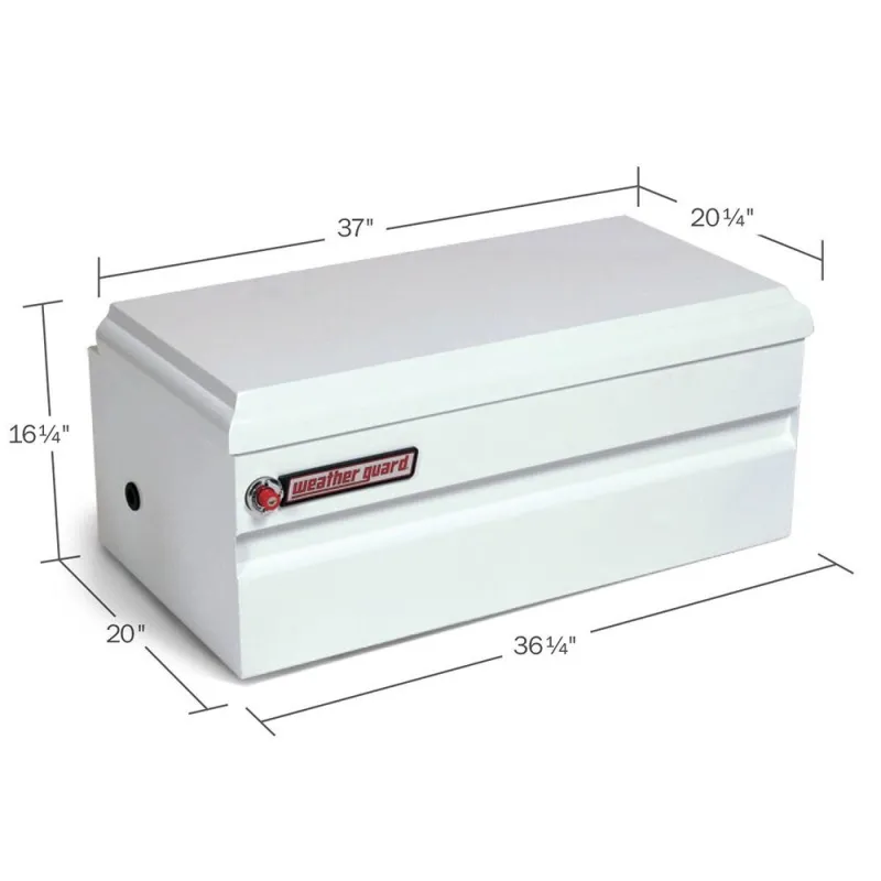 All-Purpose Chests sit below your truck bed rail to maximize rear window visibility and accommodate tonneau covers, lids, and truck caps. The Model 645-3-01 is a steel truck chest tool box for compact size trucks and has a storage capacity of 6.0 cu ft. The White ARMOR TUF® Powder Coat finish ensures years of dependability.