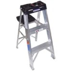 The 373 Aluminum 3ft Stepladder has a Duty Rating of 300lb yet is lightweight and easy to transport. The TOOL-TRA-TOP® has a drill holster, convenient tray for tools/paint and small parts. There is also a sturdy molded paint can hanger on the backside of the top. The SPILL-PROOF® pail shelf has a rag rack and holds a gallon paint can and automatically closes with the ladder. There is a full set of horizontals on the rear section and the 4ft, 5ft and 6ft models have a unique H spreader with hand grip for easy one-handed carrying and closing. The TRACTION-TRED® steps are slip resistant and double riveted.