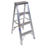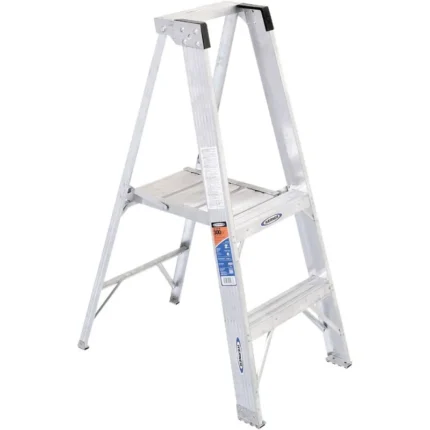 The 404 Aluminum 4ft Stepladder has a Duty Rating of 375lb and features heavy gauge TOOL-TRA-TOP®. All steps are knee braced and the TRACTION-TRED® steps are slip resistant. The rear rail is a full U channel and a full set of rear horizontals are spaced one per foot.