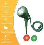 LED 60W Stake Light, 5 LEDs, Green with 2 Extra Lenses. 11-inch height. 3-foot 18/2 STJW power cord. 200 lumens. Comes with interchangeable green and red plastic lenses for seasonal decorating.